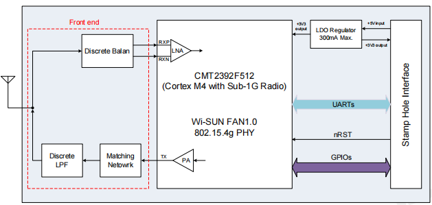 例如,HM-WS-001就是一款完全符合Wi-SUN FAN1.0规范和功能要求的透传模块,其射频通信频段为868MHz与915MHz;最大发射功率20dBm,最大接收灵敏度-107 dBm(868MHz,50kbps、25KHz);具有长距离通信,超低功耗,收发一体等优势。
